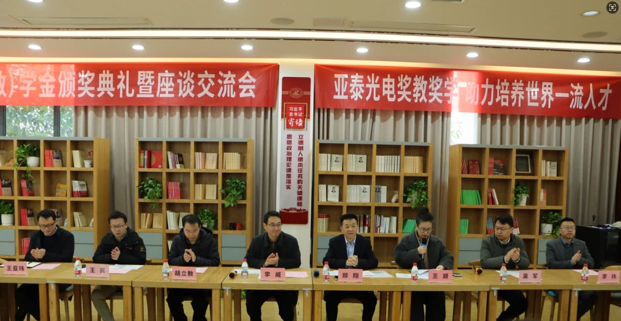 2026年3月6日上午,华中科技大学紫菘学生活动中心一楼党员活动中心内气氛热烈,2025年度亚泰光电奖教奖学金颁奖仪式暨座谈交流会在此隆重举行。本次活动由华中科技大学校友工作及对外联络办公室副主任王颖主持,学校相关单位负责人、深圳市亚泰光电技术有限公司嘉宾与获奖师生代表齐聚一堂,共同见证这一荣耀时刻。