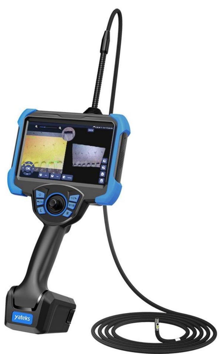 A IE 系列三维测量工业内窥镜采用 7″IPS 高清液晶护眼屏,分辨率高达 1920*1200,具触摸、按键双功能,操作快速方便; 采用亚泰光电专利技术 , 自行开发图形处理器技术 ,使图像、视频响应速度更快 ,呈显画面更清晰细腻。 探头 360°全方位旋转、过载保护并自动锁定、复位 ,实现远距离图像传输 ,可以进入到更深的通道检测, 支持 6.0TOPs 算力,满足缺陷检测和测量的要求;丰富的外围接口,扩展性更强;集光学、精密机械、电 子机械、 电子技术和显微摄像技术一体的新型无损探伤仪器 ,用于肉眼无法触及到的内部表面缺陷检测。