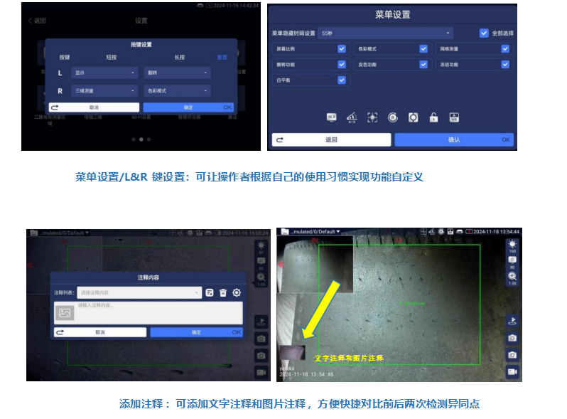具有文本添加注释功能 ,可以根据检测情况随时对内窥图片、视频进行注 释 ,方便后期报告生成 |